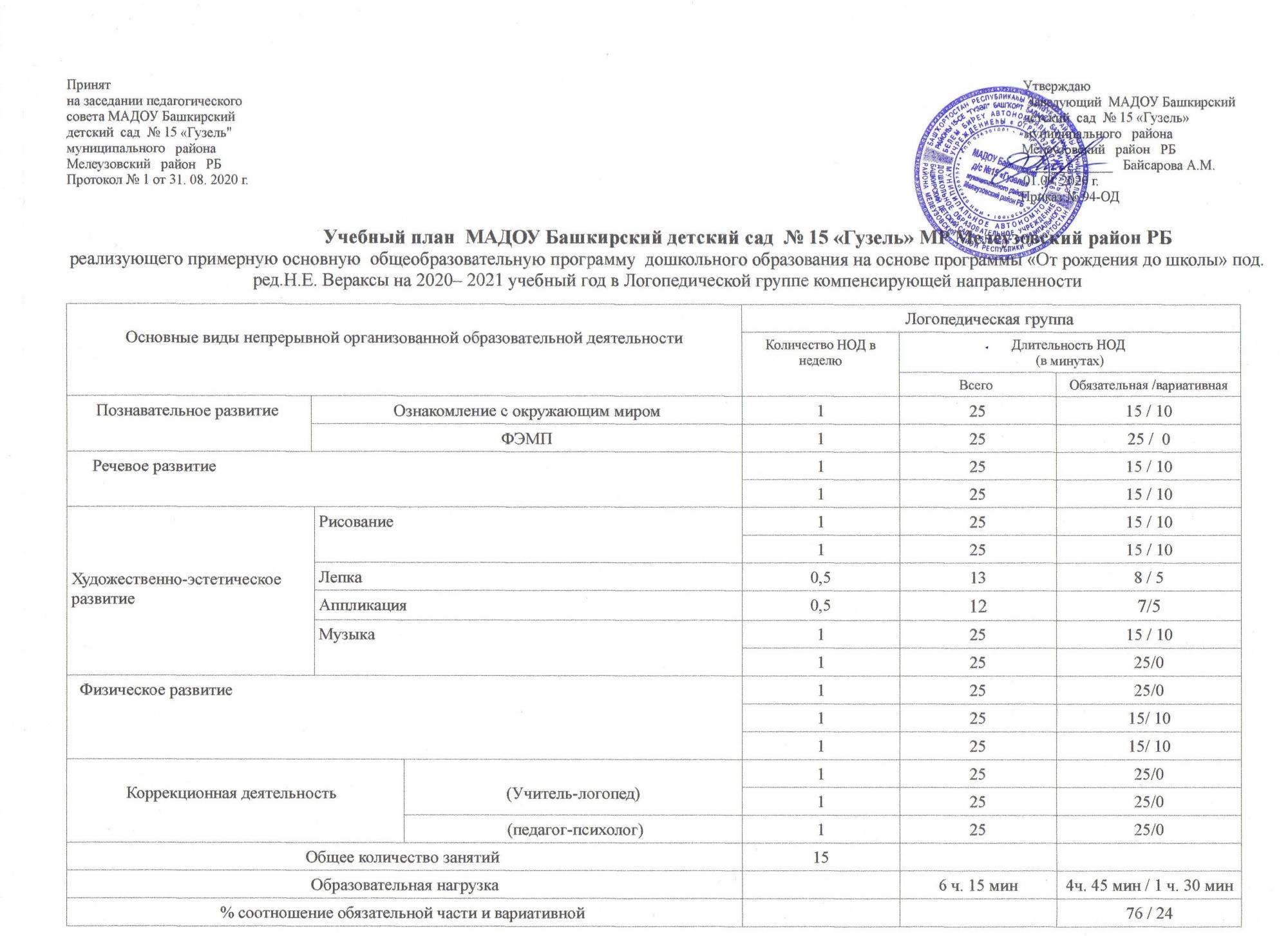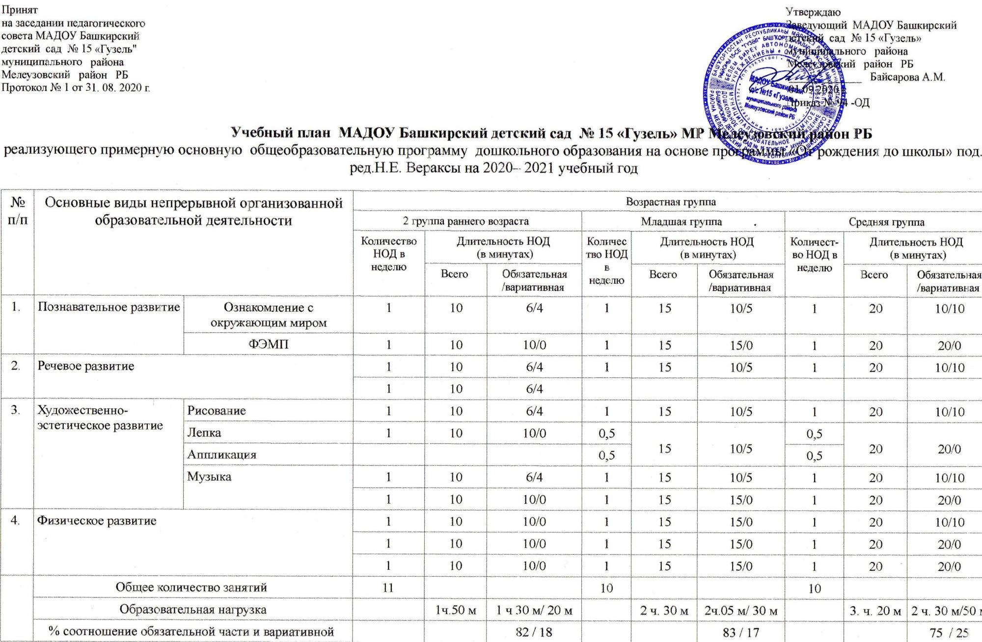 Учебный план Муниципального автономного дошкольного образовательного учреждения Башкирский детский сад № 15 «Гузель» муниципального района Мелеузовский район Республики Башкортостан является нормативным документом, регламентирующим организацию образовательного процесса в дошкольном образовательном учреждении (далее – ДОУ) с учетом его специфики, учебно-методического, кадрового и материально-технического оснащения.