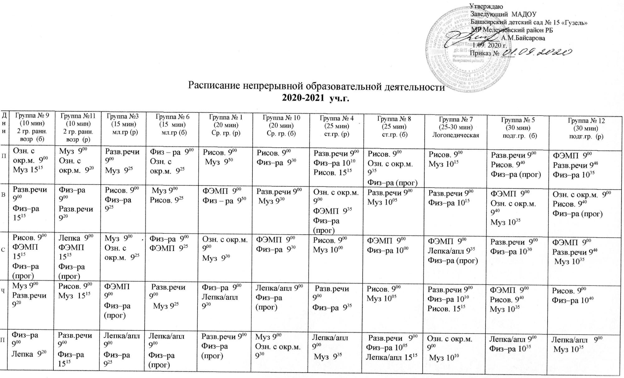 Образовательная деятельность по дополнительным общеобразовательным программам осуществляется в вечернее время продолжительностью 20 минут для детей среднего возраста, 25-30 минут для детей старшего возраста в дни, свободные от реализации основной общеобразовательной программы дошкольного образования МАДОУ Башкирский д/с №15 «Гузель» МР Мелеузовский район РБ.
